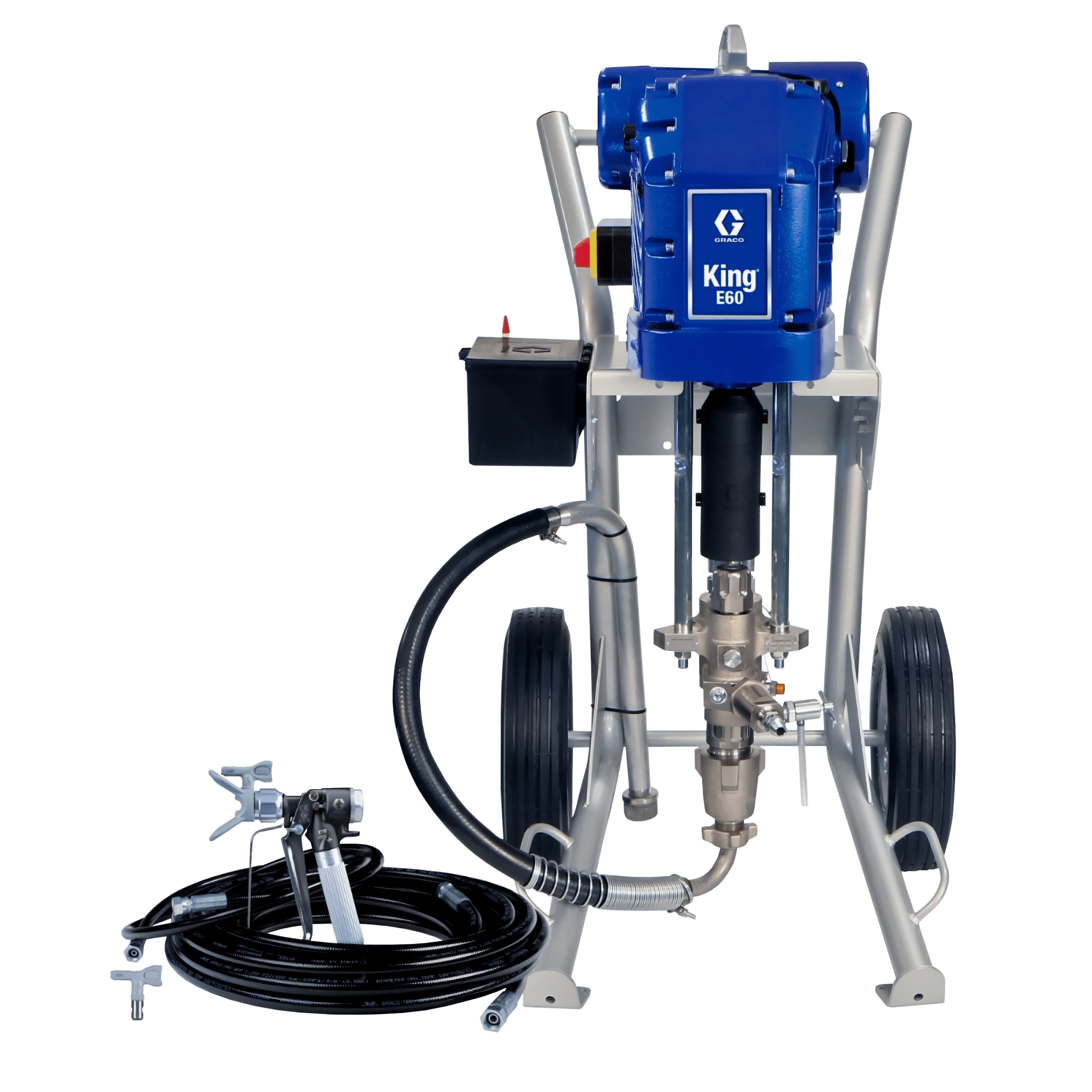 Los pulverizadores sin aire eléctricos de la Serie E King funcionan con una fuente de potencia eléctrica más confiable, práctica y disponible, que mejora las ineficiencias del lugar de trabajo asociadas con los compresores. La tecnología eléctrica también reduce el pulso y evita la formación de hielo en el motor, ¡lo que permite que sus trabajos avancen sin problemas!